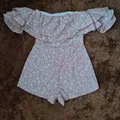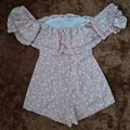 Jumpsuit Sabrina Pendek Motif Bunga Kotak Pink Kondisi masih bagus LD: 70 Panjang baju: 52