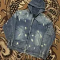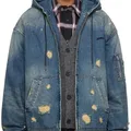 Junn J Distressed Denim Bomber Jacket