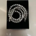 Kalung model tennis chain warna silver dengan batu zirconia bening (diamond look). Tampilan mewah, cocok untuk daily maupun acara formal. Kondisi bagus, pengait aman, siap pakai.