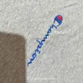Logo Dada: Bordir tulisan "Champion" (Script Logo) berukuran kecil di dada kiri.