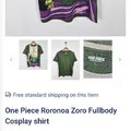 Kaos One Piece Roronoa Zoro Fullbody Cosplay Size On Tag L P x L : 68 x 52 Original 100% Like New Minus Crack Kecil Siap Pakai
