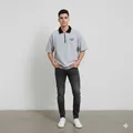 Kaos pendek halfzip berkerah abu
