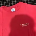 Dijual kaos Motorola warna merah/maroon dengan model corporate/vintage tee. Desain print depan kecil dan print belakang besar tulisan “HEADED FOR THE FUTURE” dengan efek cracking/fade natural (vintage look).