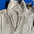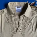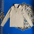Katharine Hamnett Embroidered Buttonless Collar Long Sleeve Size : L (27x20) Lay flat measurements Length: 70cm/27.5” Chest: 50cm/19.5” Sleeve length: 66cm/26”
