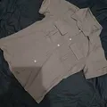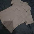 Baju ini adalah kemeja lengan pendek berwarna khaki atau coklat muda natural.