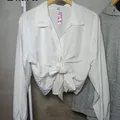 Kemeja crop outer putih lengan balon pinggang tali