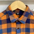 Kemeja Flannel Uniqlo Orange Blue Navy Shirt Flanel