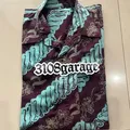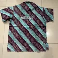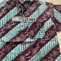 Kemeja lengan pendek mens pria casual motif batik formal santai kantor warna biru coklat