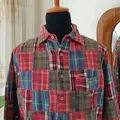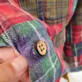 Bahan katun warna merah Ld : 112Cm Pj : 70Cm kondisi 90% ( ada sedikit robek di bagian kancing detail foto slide ke-6)