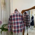 Bahan katun slim fit warna kotak kotak merah Ld : 108Cm Pj : 63Cm kondisi 95%