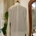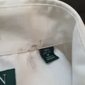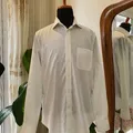 Bahan katun Slim Fit warna putih Ld : 116Cm Pj : 75Cm kondisi 90% ( ada sedikit noda di bagian kengan dan leher detail foto slide ke-6&7)