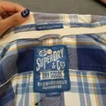 Bahan katun slim fit warna kotak kotak biru Ld : 106Cm Pj : 72Cm kondisi 95%