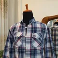 Bahan katun slim fit warna kotak kotak abu Ld : 108Cm Pj : 72Cm kondisi 90% (ada noda sedikit, detail noda slide ke 9-10)