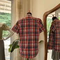 Bahan katun slim fit warna merah kotak kotak Ld : 126Cm Pj : 80Cm kondisi 95%