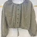 Crop No minus Kancing belakang Tali serut bagian bawah Lengan karet