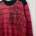 🌟[UDAH BISA DI ORDER]🌟 “Knitwear stripe Rework Painting" Ukuran : Pxl : 68x57cm (size M/L) . Harga : Rp. 145.000,- 💸 (worth it!) Free sticker . Sudah dicuci bersih wangii tinggal pakaii saja✨ Good conditions slide for detail ❤️
