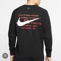 Size L on tag Panjang 68 Lebar 57 LD 114 Good Condition Hitam pekat (hitamnya nike yaa) Sablon belakang keseluruhan mulus, di ujung banget doank crack rambut seperti di foto