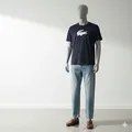 LACOSTE Signature Printed Logo Navy Tee
