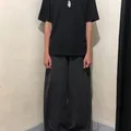 Ldark grey washed wide baggy jeans