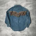 LEATHER FRINGE WESTERNWEAR DENIM SHIRT