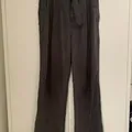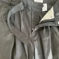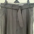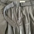 Wide fitting belted pants cut from a super lightweight, dry silk/nylon crepe with a subtle crinkled texture in a cool asphalt grey.