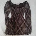 L'est rose brown long tartan babydoll top