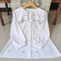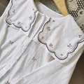 Bordir bunga kecil tersebar rapi di bagian badan, memberi kesan lembut dan feminin