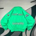Name : Leyton House Sports Vintage Racing Jacket Color : Green Stabilo Size : M fit L Boxy (⬇️P63 x ➡️L72 cm) Usable : Unisex Price : Ask Specification : • Ready To Use • Likenew • Bahan Tebal • Non Hoodie • Snap Button Resleting • Fulltag
