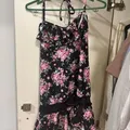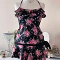 Liz lisa black floral mini dress halter top milkmaid coquett