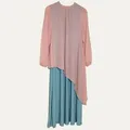 Kondisi masih sangat bagus terawat, hanya pakai beberapa kali untuk lebaran, tidak ada defect tidak ada noda, mix bahan sifon dan kaos spandex, tidak menerawang di bagian badan, bagian lengannya menerawang, silakan geser slide foto untuk detail ya kak