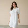 Lunara White Shirt Dress Lingkar Dada (LD): 98 – 100 cm Model: Shirt dress Lengan: Pendek Kancing: Full depan Warna: Putih