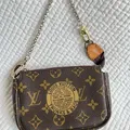 made in france , no seri belum ada, material monogram canvas, gold hardware. Menurutku sih ini clutch bag, strap chain embossed l*v, the cutest little L*V, fits your small essentials💄💳
