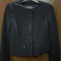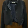 Mango suit collection (size eur S/ usa XS/ Mex CH) made in Morocco, Navy colors. This style of jacket is often designed for a sophisticated, professional look. collarless neckline, a textured fabric, and zipper pockets on the front.