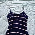 Striped Navy blue, spaghetti strap mini sundress from Mango