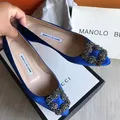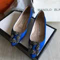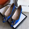100% Authentic Manolo Blahnik satin shoes flat blue size 35 (22cm) Only dustbag IG : tassiaid & luxebytassia