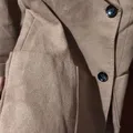 Bahan viskosa + wol Warna cokelat muda/tan Di gambar terlihat terang karena pencahayaan, aslinya agak gelap sedikit Ukuran S LD85 PJ 75 PJL 57 Minus kancing depan hilang satu