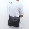 Code: "NOMOV" Dark grey nilon mixed with black polyester PVC coated mini sling bag with woven patch and labels. Width: 25 cm, Height: 22 cm, Volume: 0.5 lt