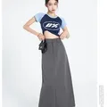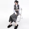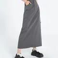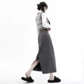 Midi Long Skirt Vintage High Waist Slit Dark Grey Korea Styl