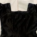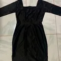 mini dress bahan silky warna hitam, lingkar dada square, belakang ada resleting panjang, tangang 3/4, dibagian paha kanan ada belahan sedikit