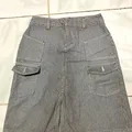 rok pendek jeans salur, bahan jeans ringan, saku kiri kanan mirip cargo, size S