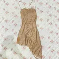 Minidress asyhmetric brown gliter pesta casual presbody y2k