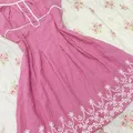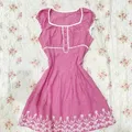 Minidress Milkmaid tartan babypink maroon bordir coquette