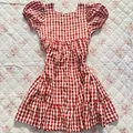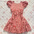 Minidress tartan maroon lengan balon babydoll vintage