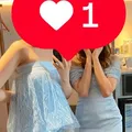 elegant sky blue strapless maxi dress with lace overlay. features a sophisticated strapless/tube neckline and a unique textured lace overlay that adds a touch of luxury. the floor-length silhouette is incredibly flattering and perfect for weddings, bridesmaids, or formal galas. high-quality satin-like finish that catches the light beautifully.