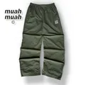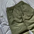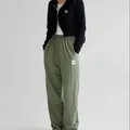 Gaya: Celana panjang longgar dengan pinggang elastis (wide banding) dan logo kecil di sisi kanan atas