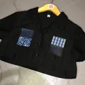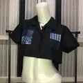MUZE crop top kemeja lengan pendek hitam lucu