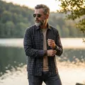 Navy Men's Regular Fit Window Pane Check Flannel Shirts.