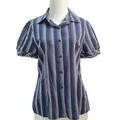 Navy Striped Shirt with Puff Sleeves