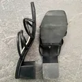 Warna : Hitam Material : Kulit Sintetis Sole : Fiber Non Slip Sole Tinggi Hak : 5 cm Dengan estimasi panjang sandal sbb : Size 36 = 23 cm