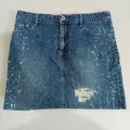 [ NETT ] Y2K Ripped Splash Denim Mini Skirt